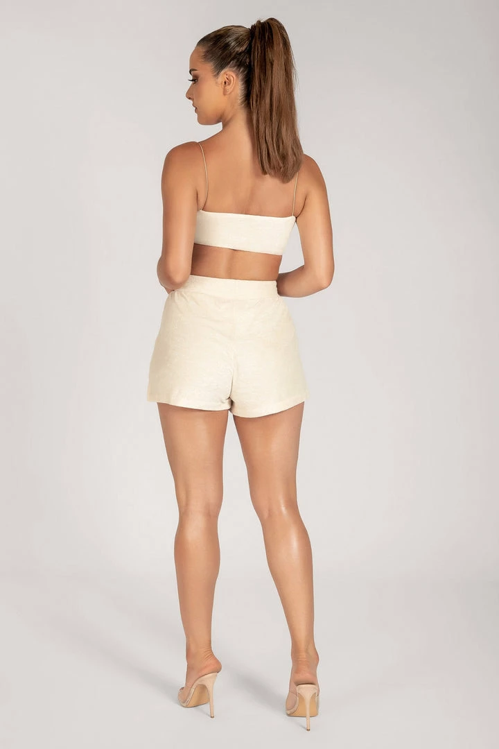 From relaxing on the sand to sipping on cocktails by the pool the MARINA Terry Towelling Thin Strap Crop Top covers all your needs. This crop top in terry towelling fabric will help dry you off while keeping your style high. Pair with the MARINA Terry Towelling Shorts to complete your next beach day ‘fit.