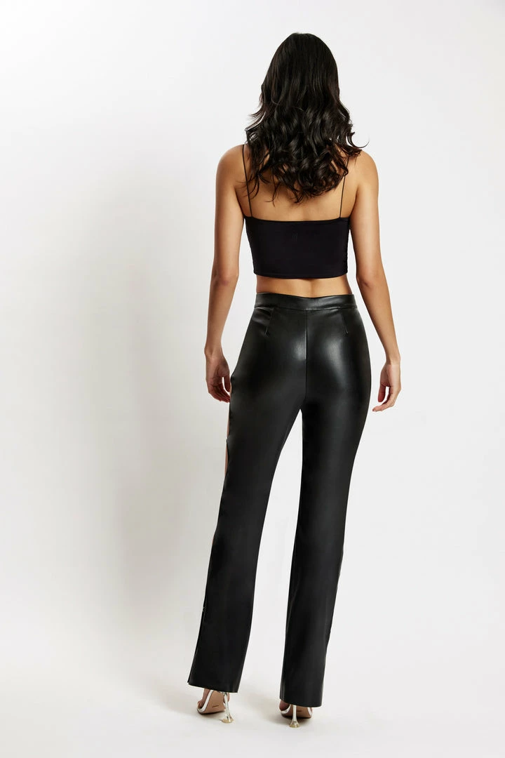 Edgy from all sides, ALEXA serves up a serious look. Made from a soft PU leather fabrication and adjusted to mix a sleek front with cut out features, she adds all the drama you need on a night out. Pair with our Annaliese Wrap Over Blouse to make a bold statement, or our Yvonne Cami Crop Top for a fierce tonal fit.