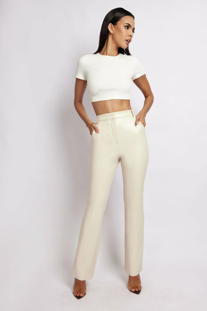 Designed for knock-out impressions, the TYRA Straight Leg Faux Leather Pants are a MESHKI favourite. Tyra sits high on the waist to snatch you in and hug your hips, a concealed centre front zipper closure and functional twin pockets. She’s a 90’s inspired style that is here to stay. Complete the look with our MESHKI Basics to elevate your everyday.