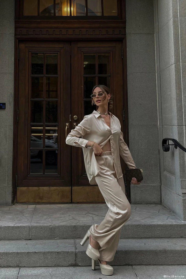 Embrace elevated ease in EMELIE. Crafted from a beautiful satin fabrication, Emelie is a timeless favourite for the modern muse. She features a classic collared neckline, button up closures for endless styling potential and a relaxed fit. Dress her up or down as you please.