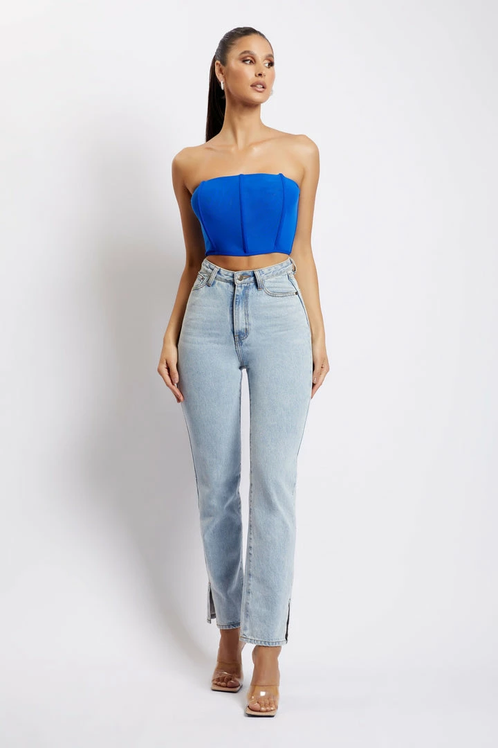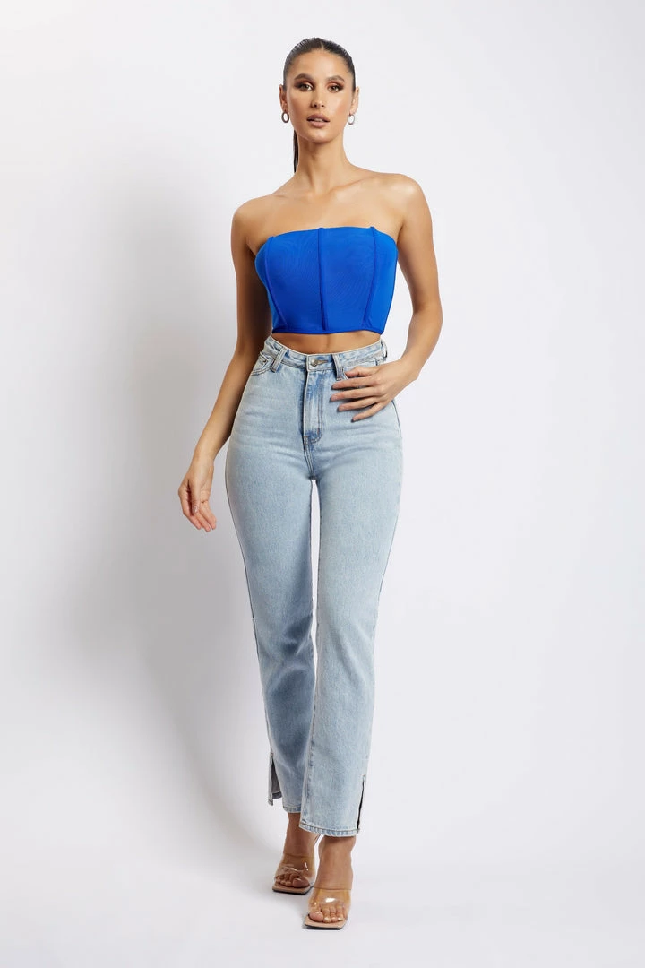 Beautifully crafted from a double layered mesh, the ALLIE Mesh Corset features corsetry boning that has been designed to cinch your figure from within. She features a timeless strapless design and pairs perfectly with MESHKI Denim or our signature Tyra Straight Leg Faux Leather Pants and strappy heels. We’re wearing ours to date night or cocktails with the girls.