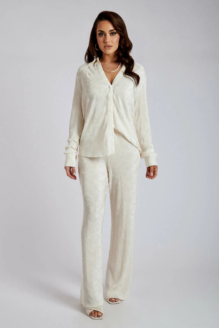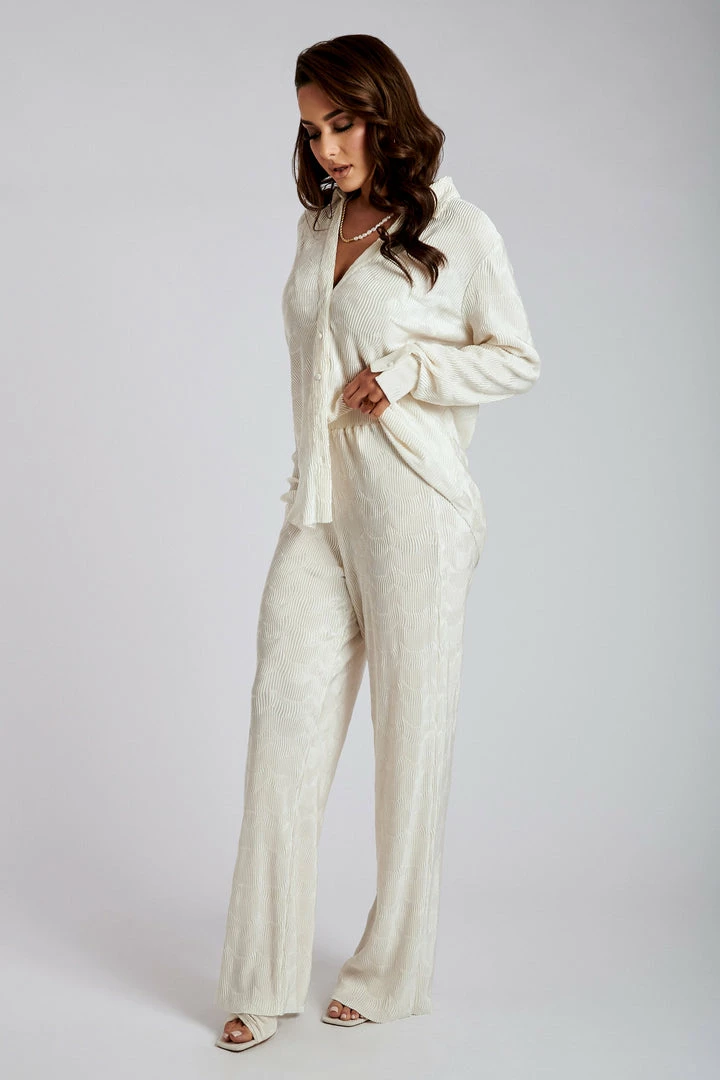 Classy & chic is the AYTAN Pleated Wide Leg Trousers. They are an effortless pant featuring soft satin pleated fabrication, high waisted fit and elastic waist band. This is your all in one style, dress up with our AGGIE Mules or down with some sneakers for a casual weekend fit. Pair it with the Yara Pleated Satin Skirt for the ultimate look!