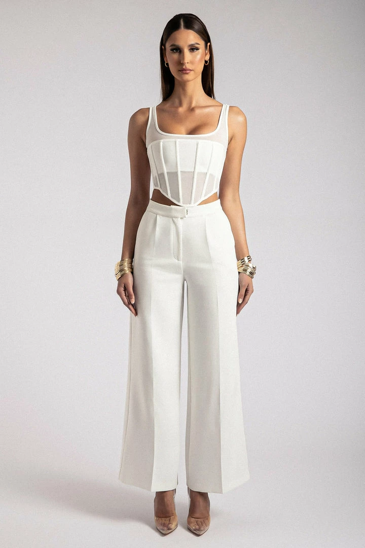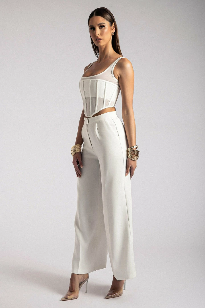 For extra glam boss vibes, the DELANEY Corset Bustier is a key piece for your wardrobe. In a power mesh base with boning and a bandeau shape lining to give coverage. Pair with a pair of high-waisted pants and you are ready to go to your next girl gang lunch.