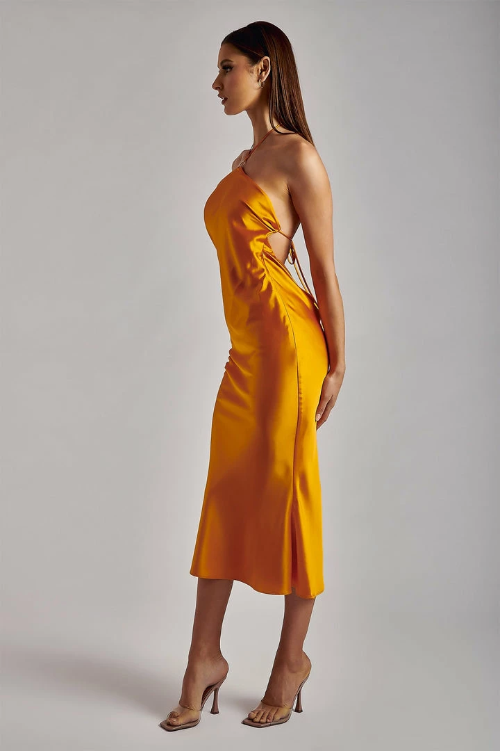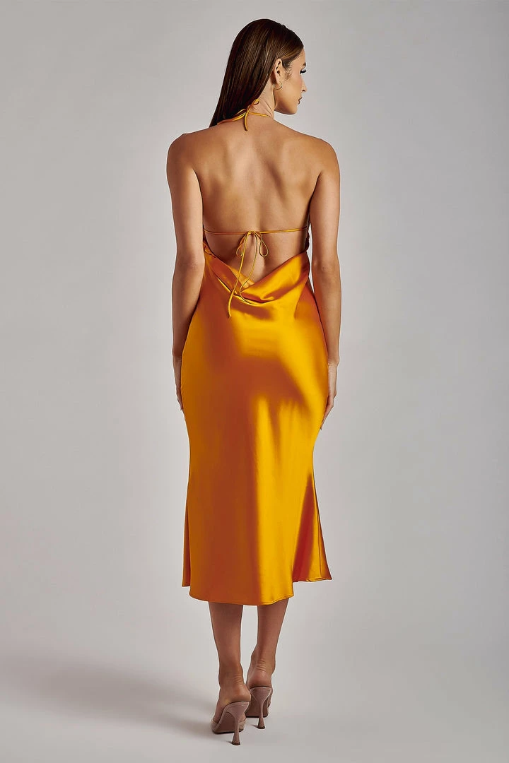 Flirty and fun, the IVANA Satin Halter Midi Dress is crafted from a soft-to-the-touch satin which drapes naturally to your body. Embrace your collarbones with Ivana’s halter neckline and impress from all angles with her low back cowl scoop. Complete your look with our accessories of choice and you’re sorted for your next event.