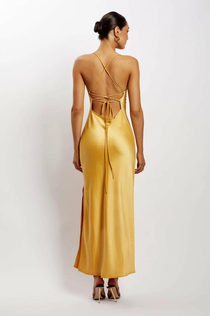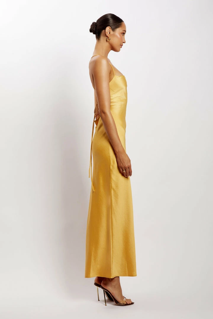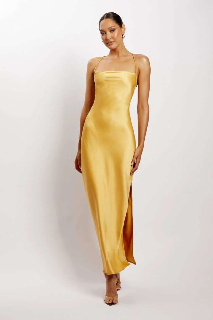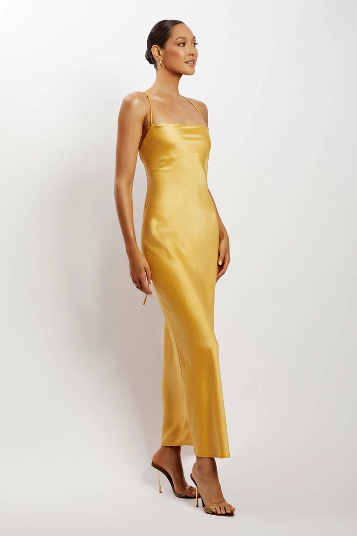 An understated and elegant silhouette for the modern muse. The much-loved SYDNEY Straight Neck Slip Maxi Dress returns in a fresh hue for a season of celebrations. Boasting a squared neckline and head-turning open back, this midi features a cross back design with a self-tie feature for a customised fit. Team with barely-there heels to keep Sydney in the spotlight.