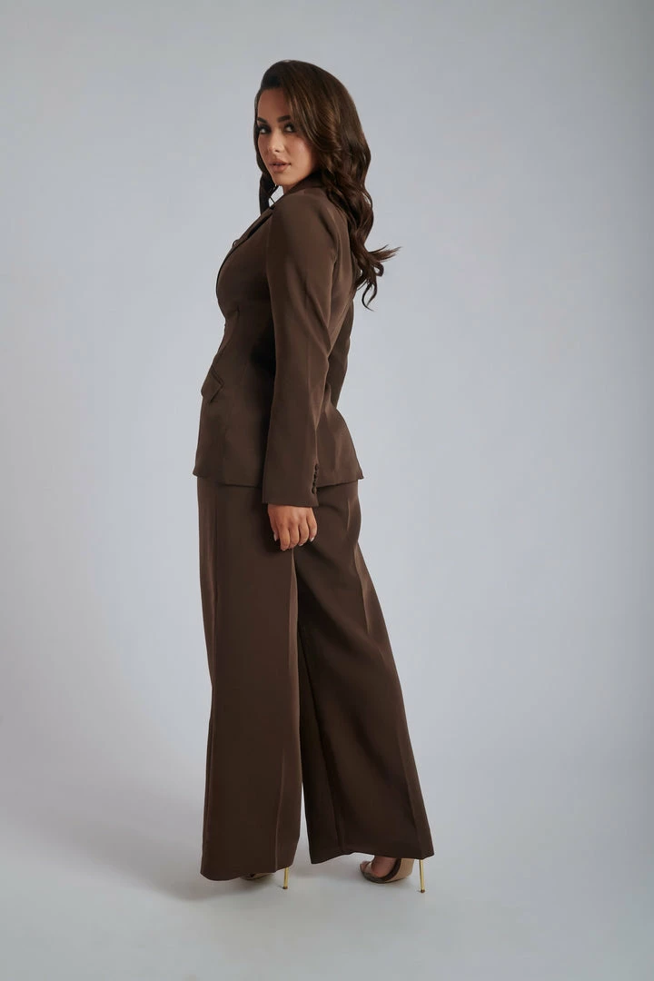 Power Suit: activated. The HELDA Fitted Cinched Waist Blazer is here and a wardrobe must-have this season! Featuring a cinched waist and single front button fastening to highlight your silhouette. This blazer can be perfectly paired with the ALANA Wide Leg High Waist Pants.