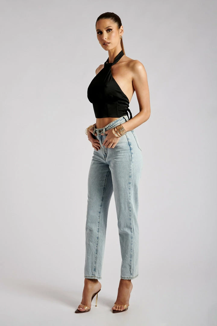 Put your best silhouette forward with the JESSICA Halter Corset Crop Top. Designed to show off your flawless assets with self binding underbust detail, covered boning corset feature and open back with self tie detail. From date night to dancing the night away with the girls.
