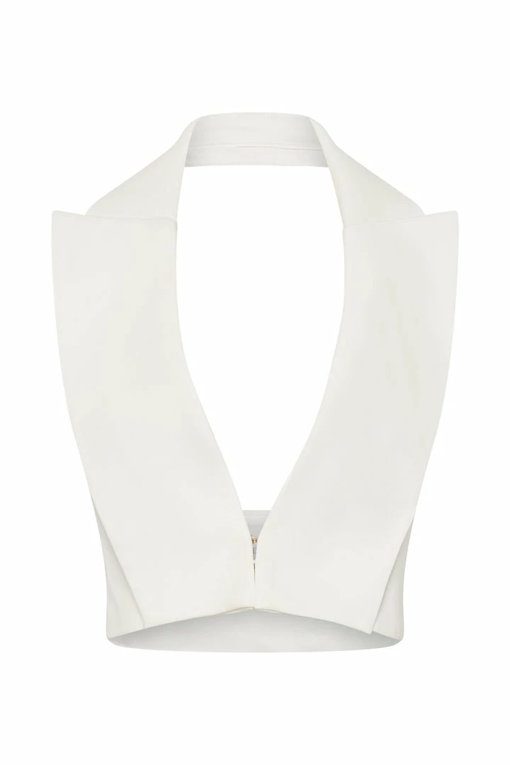 Blaze a bold new path in SEMARA. A statement piece that celebrates feminine power through strong tailoring. Featuring a deep-v front and open back, Semara is the ideal crop for days or nights when you mean business about having a great time. Style with our Semara Midrise Straight Leg Pant to complete the look.