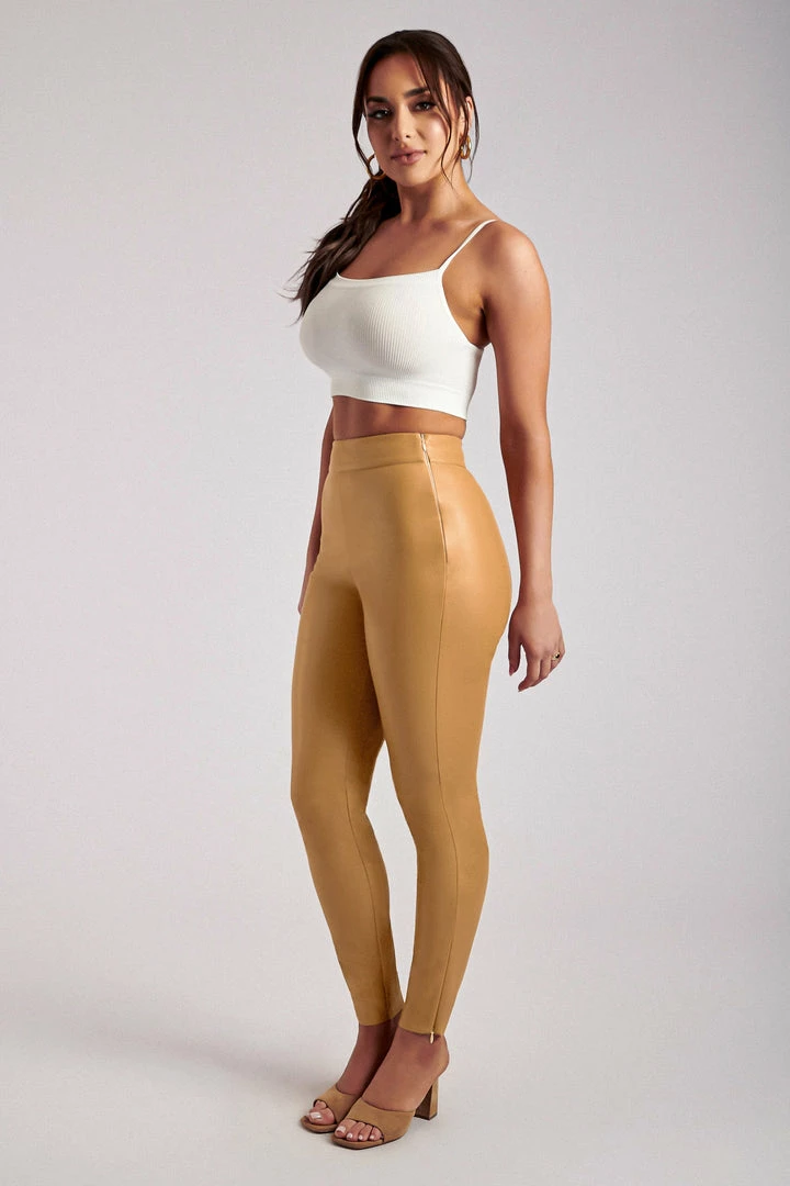 Adds to Cart: Immediately. In our much loved faux leather fabric the SHAYLA Skinny Leg Split Pant has arrived. These new favourites feature a high rise waist and a slim straight leg silhouette with an invisible side zip at ankle for ease. We can’t promise they won’t sell out so get in quick before they are gone!