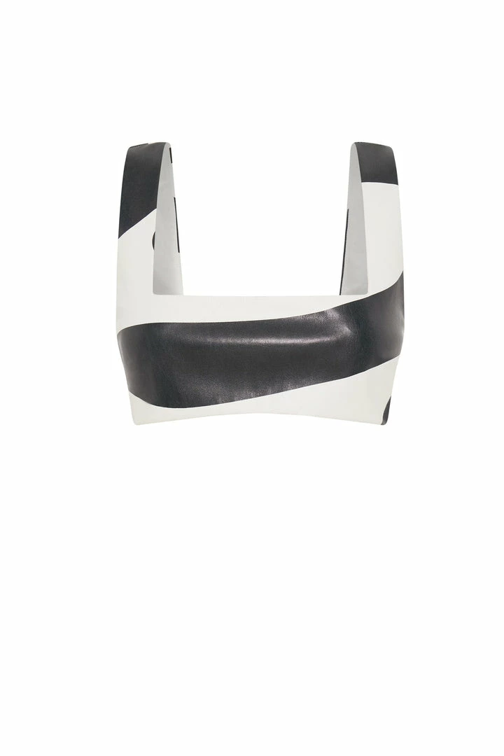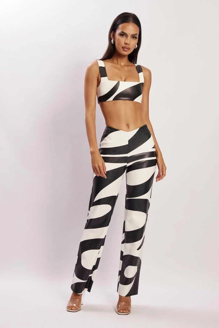 Make your entrance a memorable one in MAHLA. For the MESHKI girl that exceeds expectations, Mahla is a favourite cut that has been revamped in a monochrome swirl print. Crafted from a faux leather fabrication, she features a square neckline and wide shoulder straps. Complete the look with our matching Stevie V Front Print Pu Pant or dress her down with MESHKI Denim.