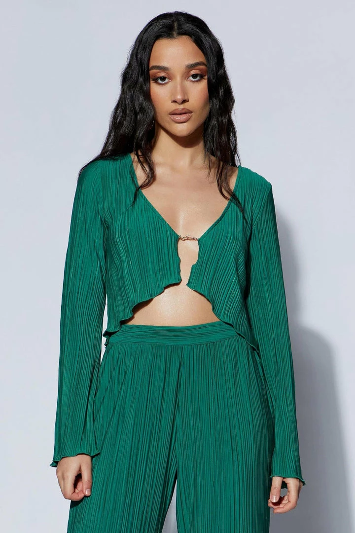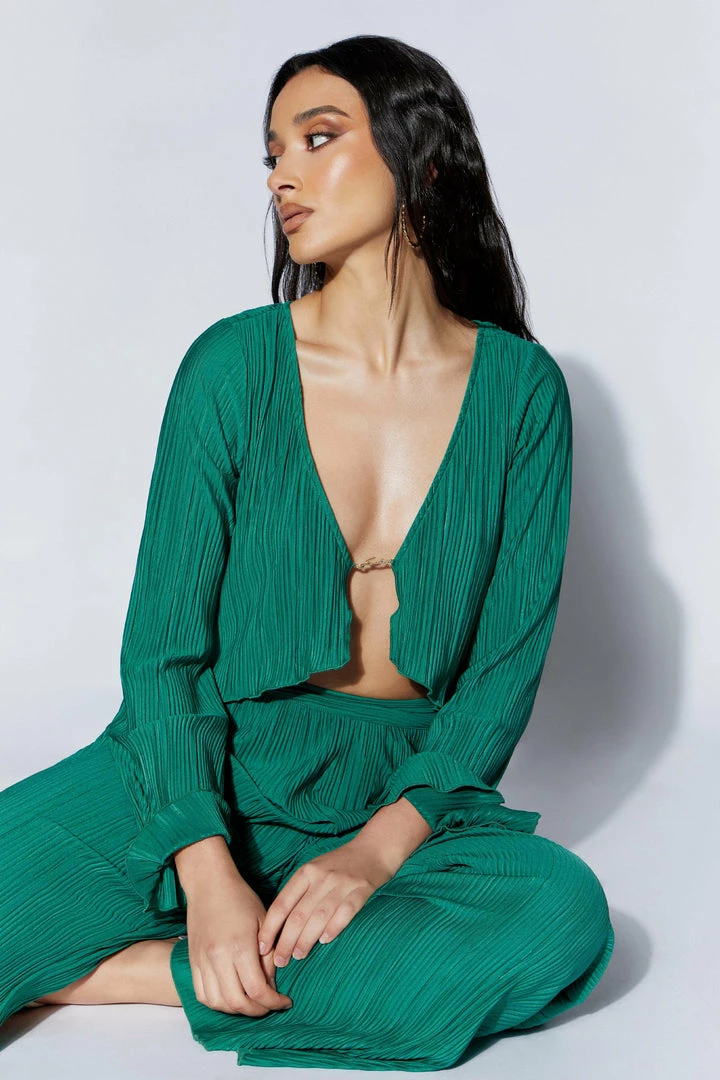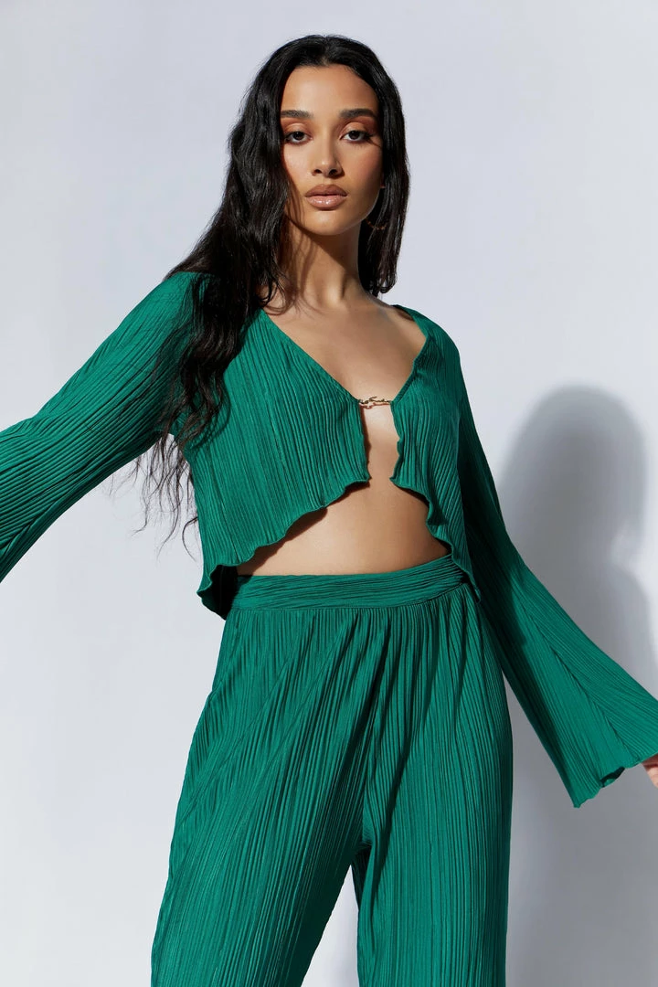 For summer, sun-kissed gals who love moving freely and untethered, our MEHRU Crinkle Flare Sleeve Top With Hardware may just be the new go-to. From casual, every day events to semi-formal dinners, dates, and parties, Mehru is as versatile as she is dreamy and romantic. Flared sleeves and a raw hem give piece an artfully loose and flow-y look. It’s the wardrobe equivalent of a beautifully messy bun; soft, stylish, and more appealing without the neat, finished edges. The crinkle pattern adds physical and visual texture, adding depth and dimension to the top’s seemingly simple design. The front closes via a simple, dainty chain detail in written Farsi (translating to MESHKI, meaning ‘black’) giving you plenty of room to breathe, move, or simply be. Wear with our Mehru Crinkle Straight Leg Pant for chill, effortless vibes, or pair with MESHKI Denim and sandals for late Sunday brunches with the girls.