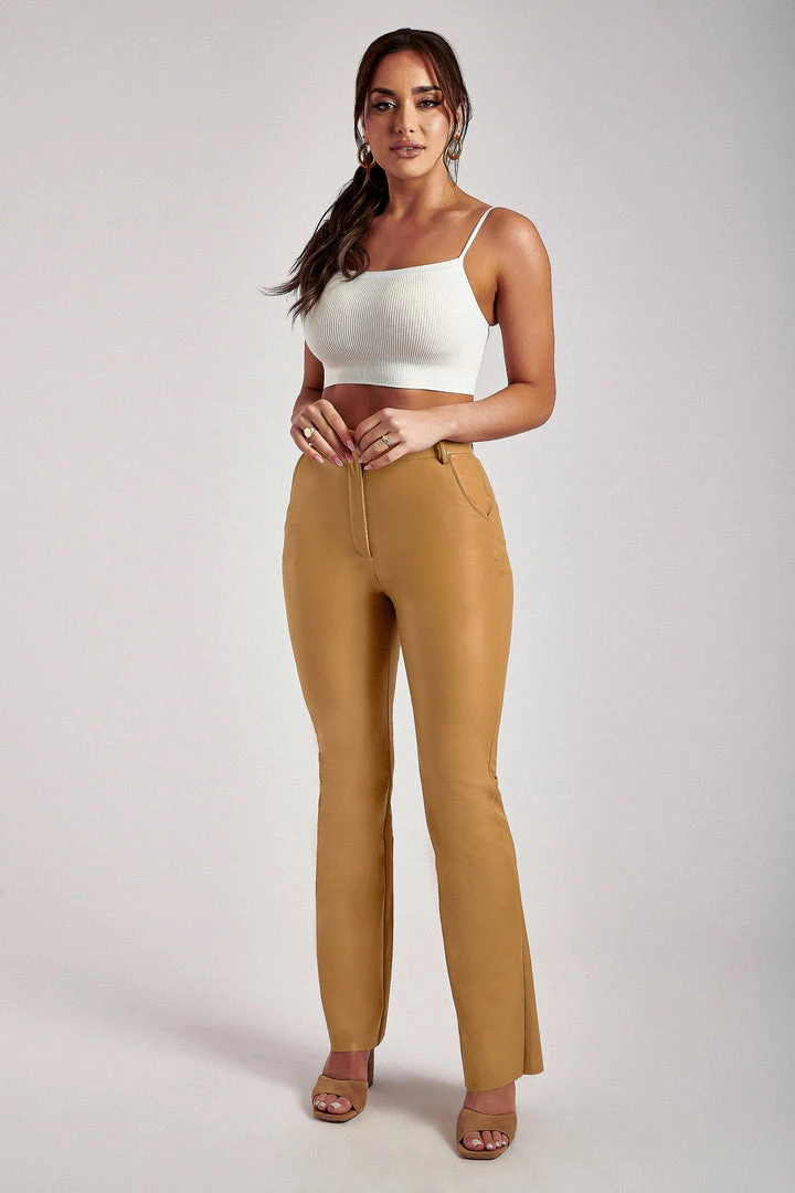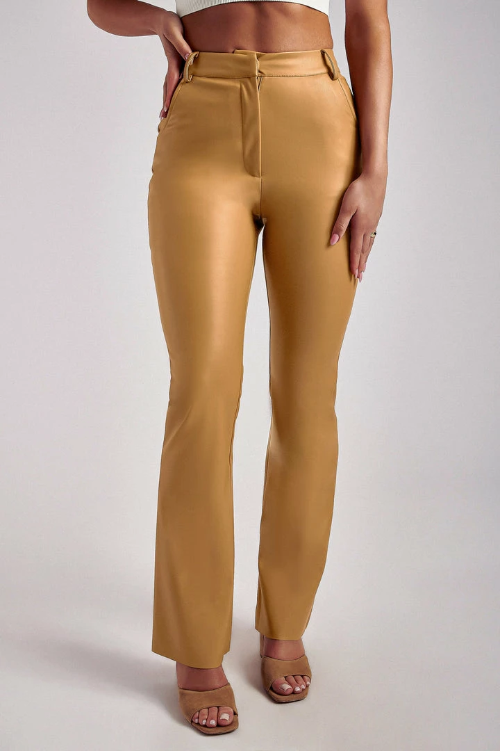 Our Tyra faux leather pants are for knock-out impressions. Snatch you in. Hug your hips. These tight high-waisted pants are finished with a lapped zipper and hidden waist button. She’s a ‘90s-inspired wide leg style that is here to stay. Did somebody say timeless? Add her to cart, and while you’re at it, add in the Tyra faux leather belted shirt for a head-to-toe, look-at-me ensemble. You know you want to.