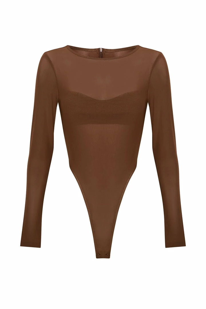 Girl! You’ve just found the best styling piece for your next weekend look. Our BLAIRE Mesh Long Sleeve Bodysuit features a chocolate mesh material with a double-lined panelling to cover the important bits. Complete this look with our ANNABELLE Mini Skirt.