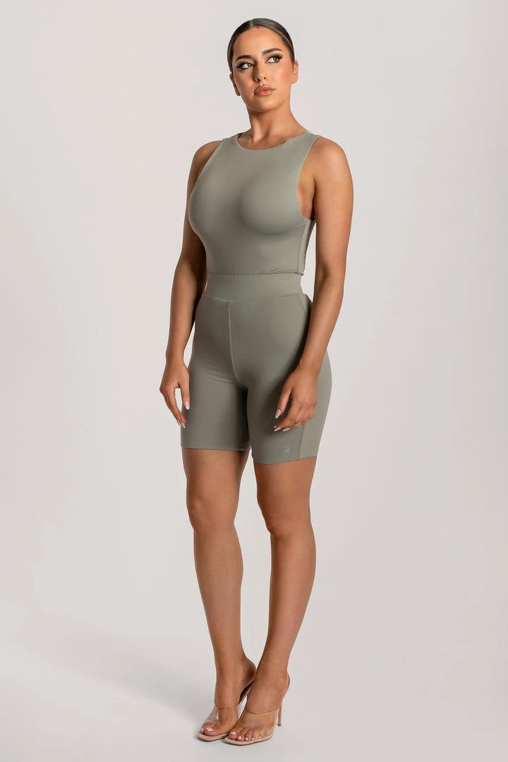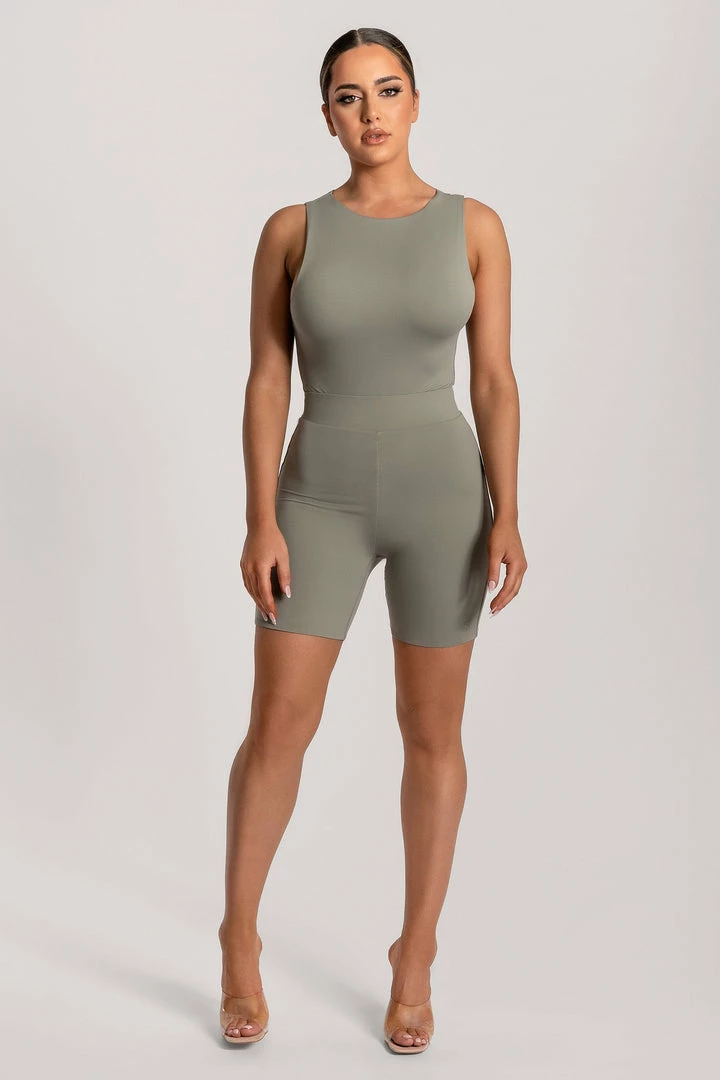 Accentuate your figure with our streamlined ABBIE Racer Neck Tank Bodysuit, designed to carve your silhouette in all the right places. Crafted with our soft-touch stretch fabric, featuring a high neckline and cheeky high cut, this bodysuit is an essential in every stylish wardrobe. Wear yours with our favourite SYLVIA Joggers for a stylishy casual look!