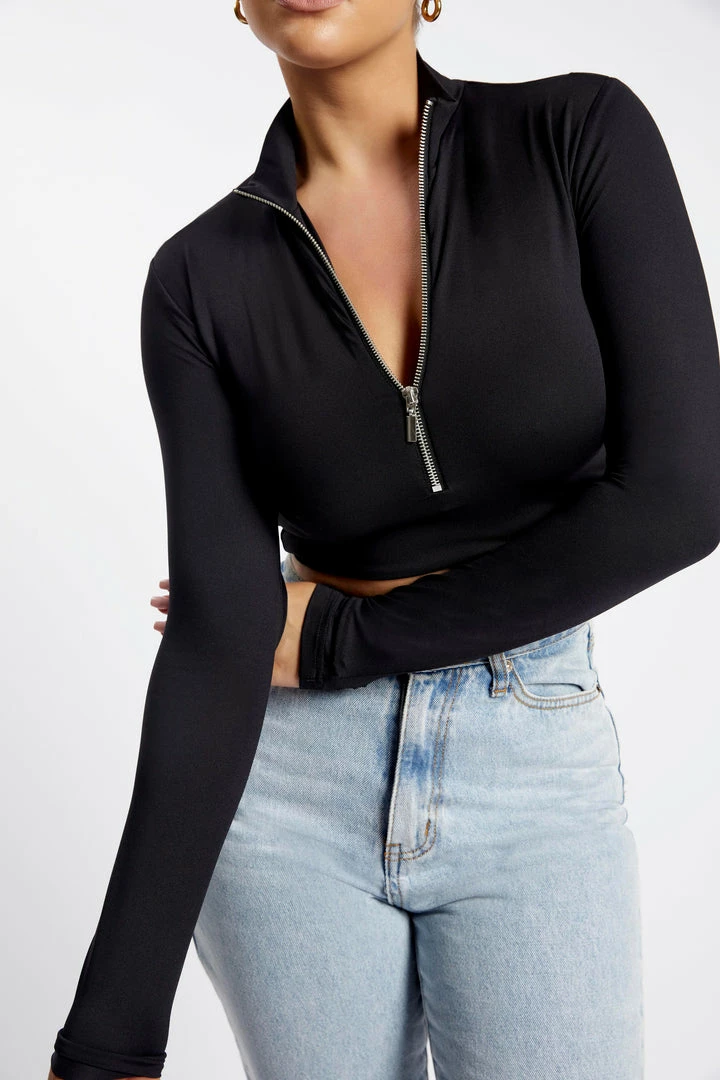 Modern yet classic, the REBECCA Zip Up Crop Long Sleeve Top is a curated approach to off-duty dressing. Cropped in length, Rebecca features a collared neckline, centre front zip closure that is adjustable for your desired neckline and full length sleeves. Made for everyday wearability, she is cut from our coveted COMFI Skin fabrication that offers a close fit with unrestricted movement. Team with MESHKI Denim to take the effort out of styling.