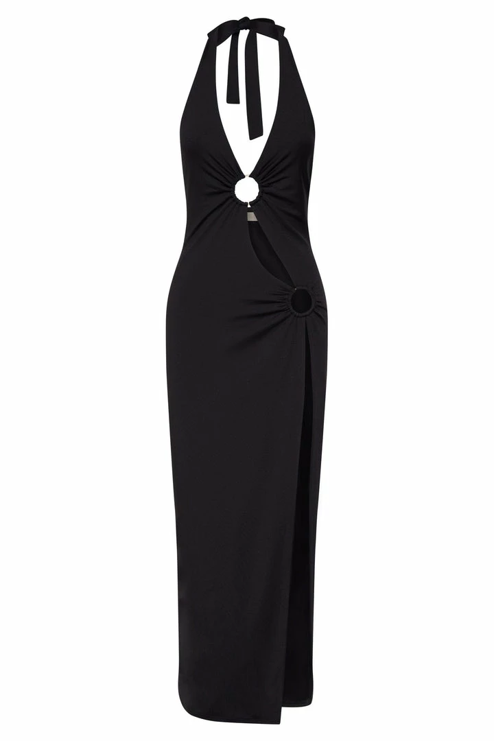 Dare to bare in the ANIKA O Ring Halter Midi Dress. This fashion-forward piece will flaunt your figure with its cut-out detailing and thigh high split – making you feel like the goddess you are. Unsure how to style? Reach for heels and minimal jewellery and let Anika do all the talking.