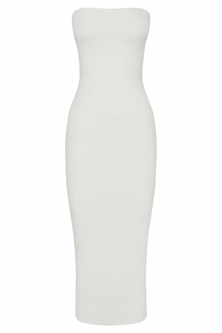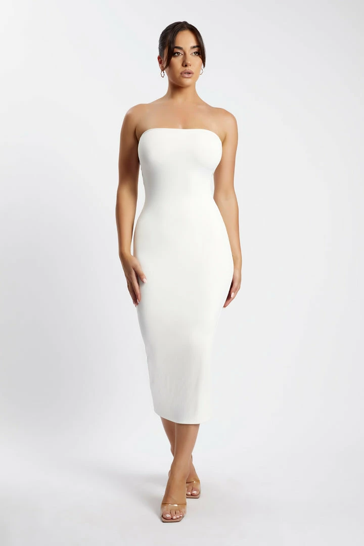 Simple yet striking and ready to make a statement. Dress to impress in the CASSIDY Strapless Midi Dress, offering a timeless silhouette in our signature COMFI Skin fabrication. She is strapless in design and boasts a bodycon fit to highlight your curves from every angle – offering optimum comfort and shape retention for all your off-duty antics. Dress the look down with white sneakers for everyday styling or pair with stilettos and statement jewellery for maximum impact.