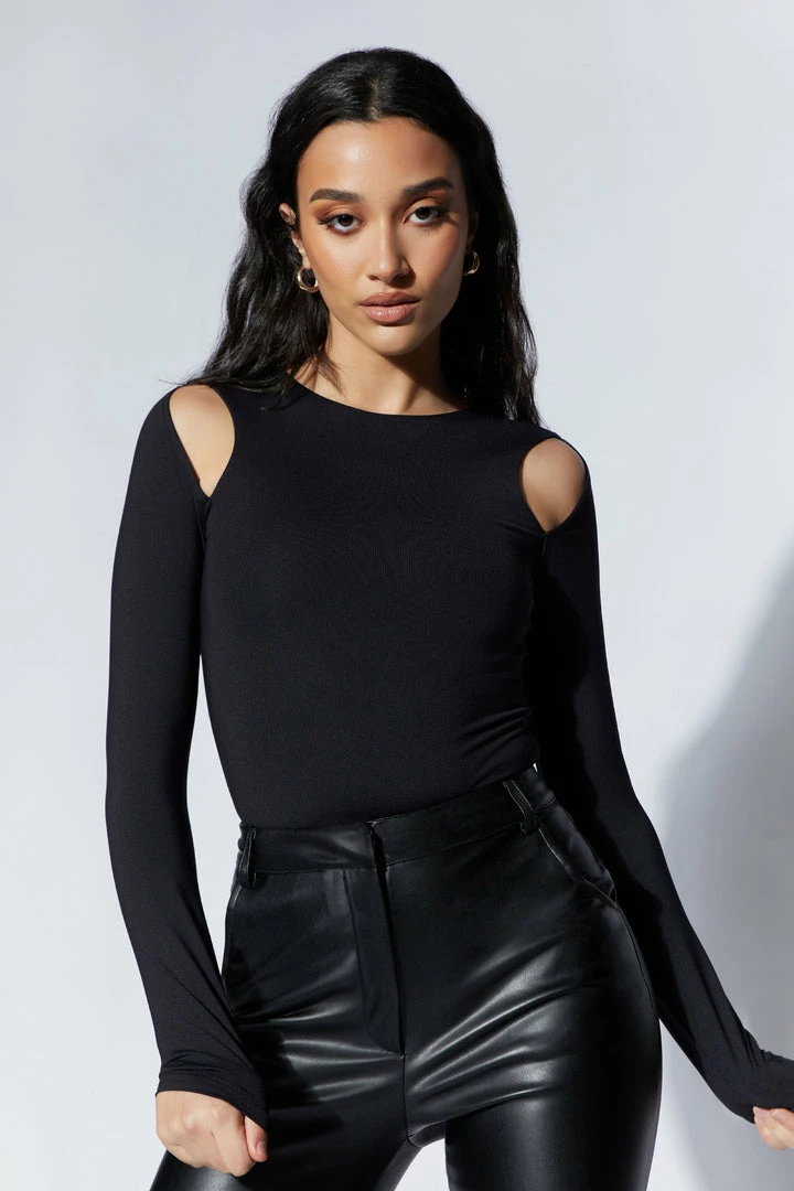 For a softer, more understated ensemble, CHARLI’s the one you need. She’s subtly sexy in an everyday kind of way. Running errands? Constantly on-the-go? She’s got you covered — literally! The full bodysuit, long-sleeved design ensures full coverage, but they’re balanced out by the wide cold-shoulder cuts. Complement her long-sleeved design with a pair of low rise jeans — like our Sonya Low Rise Denim Jeans.