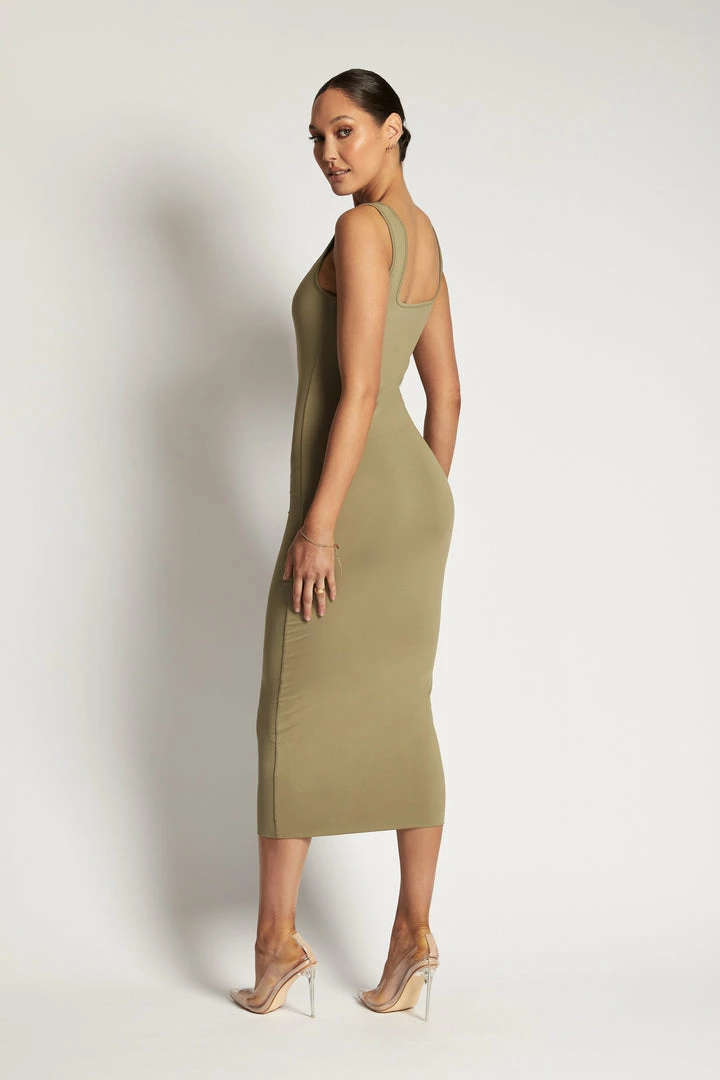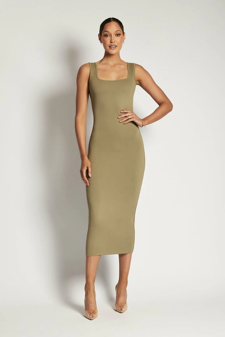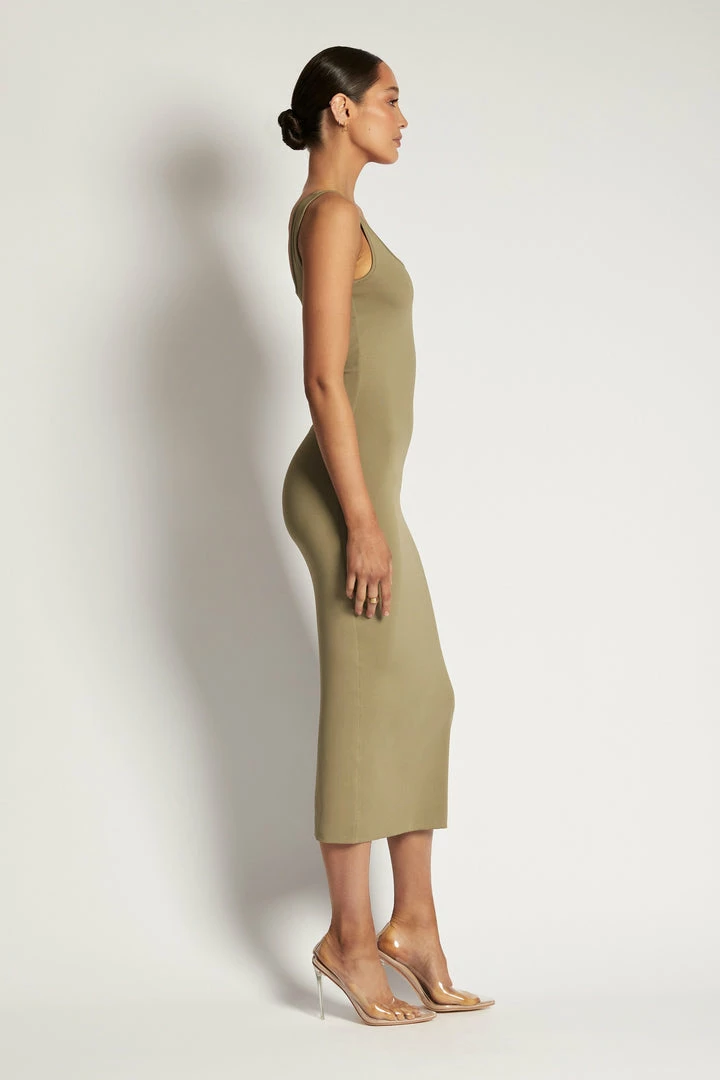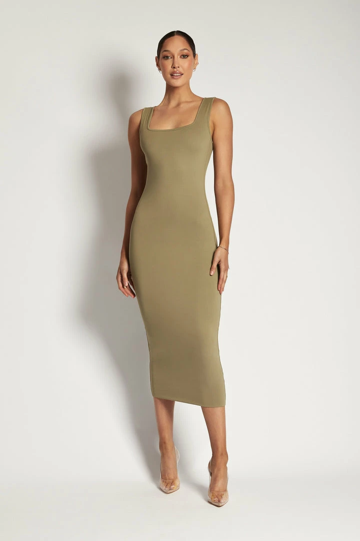 The square-neckline on the JHENE Tank Maxi Dress is flattering for all body-types. If you’re blessed with a voluptuous bust, it will enhance and highlight your curves without adding unnecessary volume and if you’re rocking a smaller bust or a petite figure, it will create an illusion of a curvier silhouette. The wide straps allow you to wear your fave bra (whether it’s push-up for the extra volume or soft and supportive for maximum comfort) and show off your décolletage with confidence. Cut in a midaxi/below the knee length, she can handle serious conversations in formal settings as well as casual trips to your nail salon. It’s made in our COMFI Skin fabric that feels like pure luxury; silky soft to the touch, super stretchy and flexible and comfortable for an all-day wear.