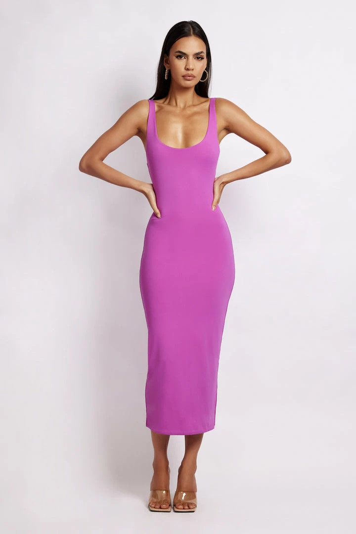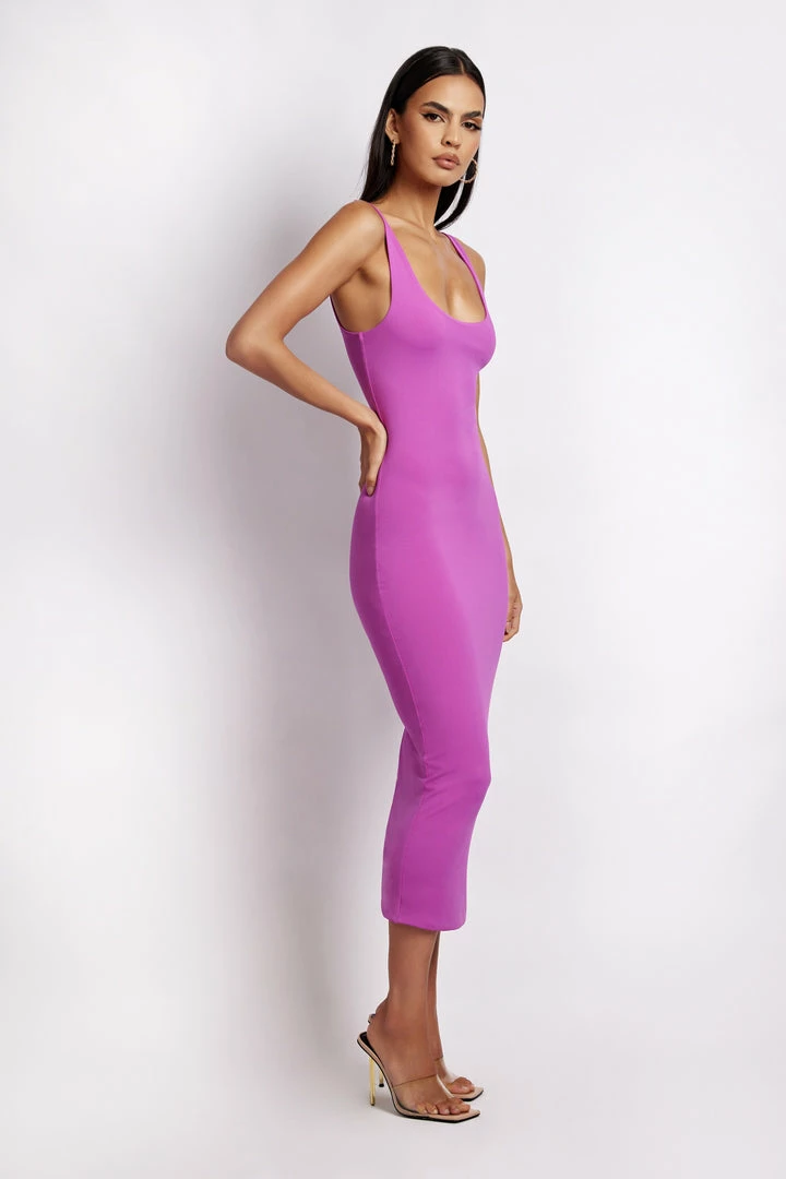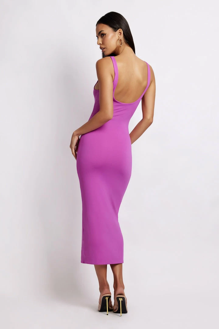 The INDIA Scoop Neck Maxi Dress is a beautiful blend of timeless design with curve enhancing features. Crafted from our much-loved COMFI Skin fabrication, India has been designed to skim your silhouette and highlight your best assets. She features wide shoulder straps that sit seamlessly on the body and a wide scoop neckline to showcase your décolletage. Take her effortlessly from boardroom to bar with our Helda Fitted Cinched Waist Blazer and gold jewellery.
