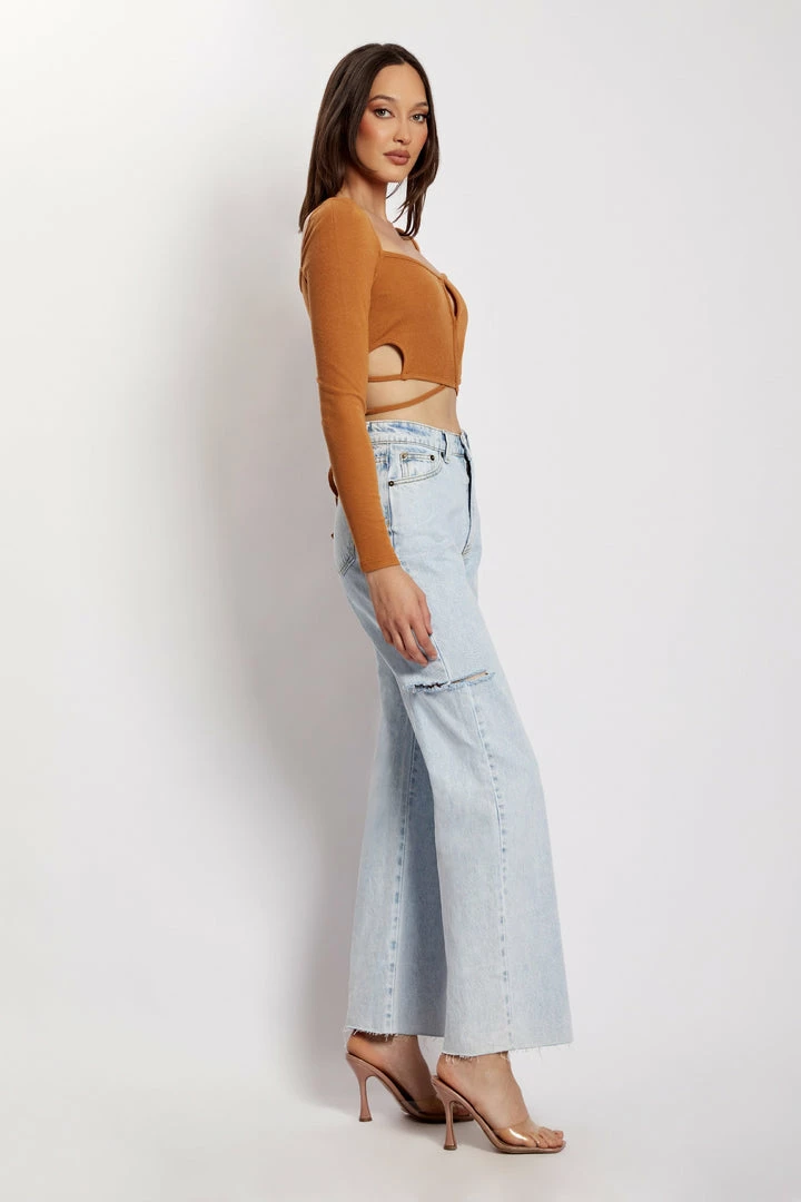Dare to bare in the JANET Long Sleeve Cut Out Top. Equal parts versatile and on trend, Janet showcases maximum cut outs to make you feel confident and sexy with every wear. Her square neckline is here to accentuate your collarbones and cropped fit that allows you to pair effortlessly with all your high waisted bottoms.