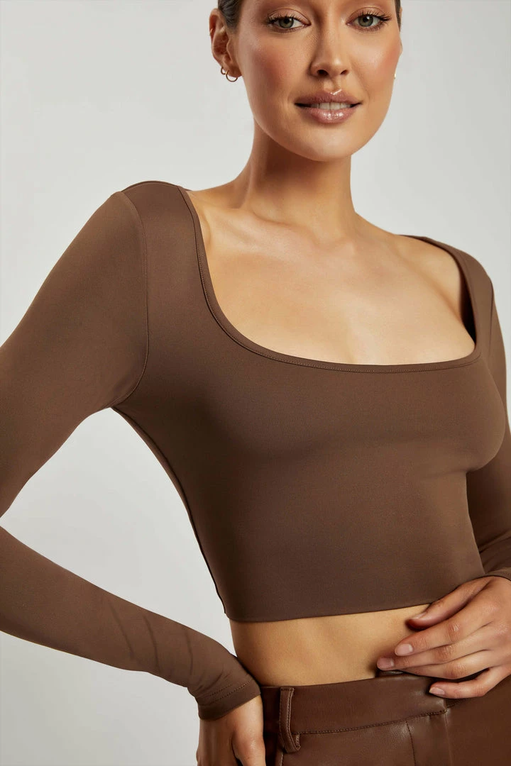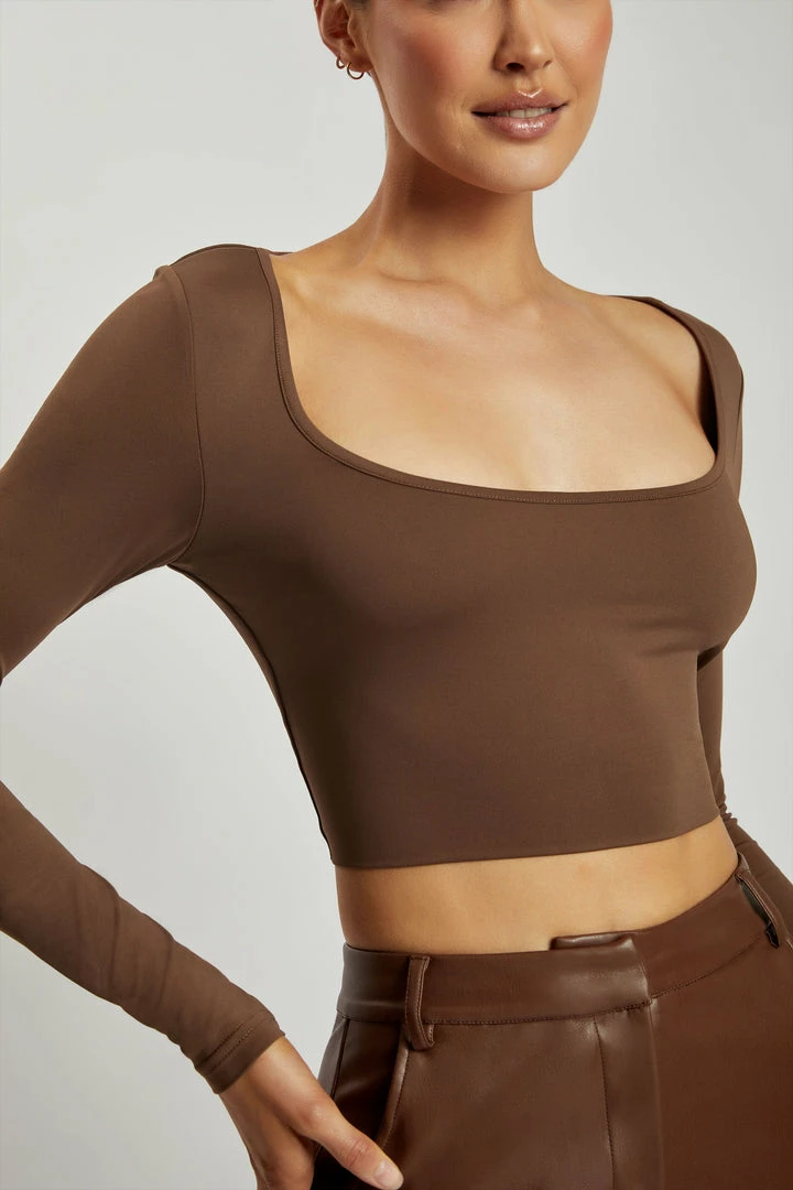 Featuring a square neckline that shows off your decalotage while allowing you to wear the bra that makes you feel your best, a cropped length that sits perfectly above high waisted pants and long sleeves, the LANA top is the best of three worlds. .It’s made with our COMFI Skin fabric that feels like second skin, featuring a silky soft hand touch and high stretch for comfortable all day wear. It’s chic, it’s elegant, it’s for all year, all occasions.