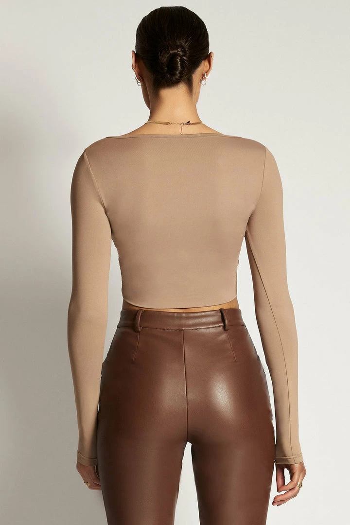 Featuring a square neckline that shows off your decalotage while allowing you to wear the bra that makes you feel your best, a cropped length that sits perfectly above high waisted pants and long sleeves, the LANA top is the best of three worlds. .It’s made with our COMFI Skin fabric that feels like second skin, featuring a silky soft hand touch and high stretch for comfortable all day wear. It’s chic, it’s elegant, it’s for all year, all occasions.