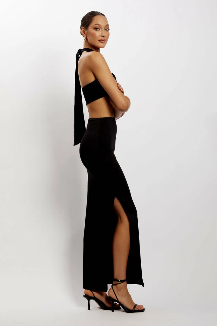 The LOTTIE Back Split Midaxi Skirt is a staple for the modern wardrobe. Featuring a simplistic silhouette that adds extra glam and effortless sophistication, Lottie sits high on the waistline and contours to your body. We’ve incorporated a split to the skirt for easy movement so you can transition from day to night in style. Pair with our Lea Multi Way Crop Top and gold jewellery for a look to remember.