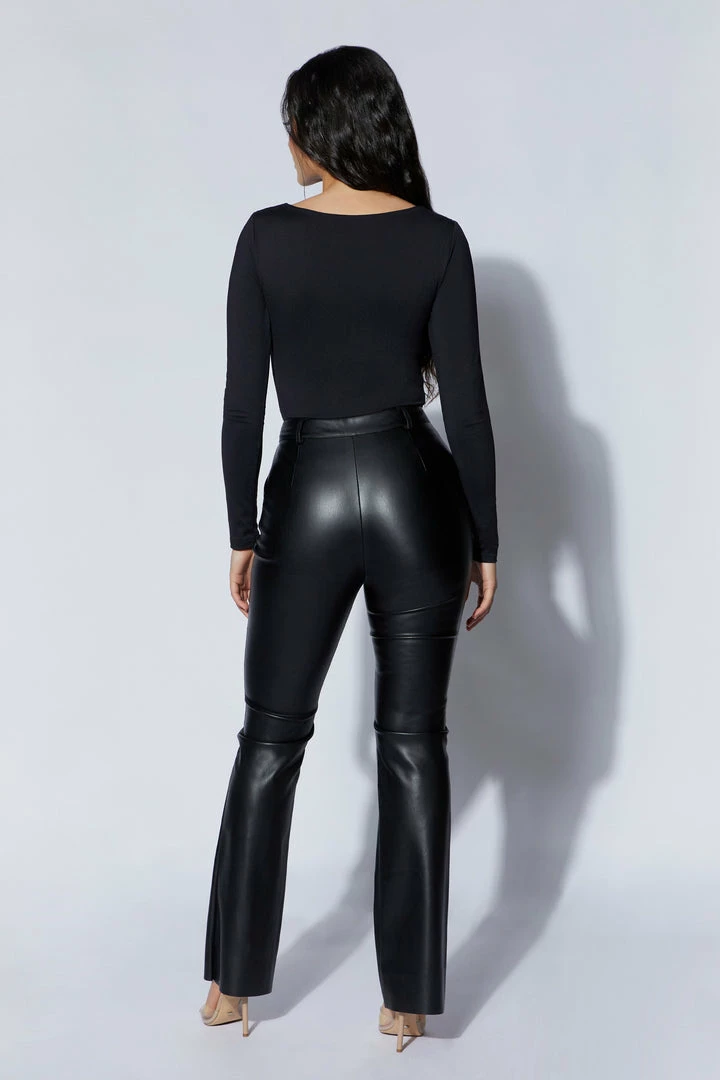 NIA is a must-have. A closet staple. Every girl needs a comfy, dependable clothing item that always makes them look good and feel good with minimal effort. That’s Nia. She’s a bodysuit classic – so she’ll always stay tucked and seamless – with long sleeves and a deep V neckline. She’s a beautiful combination of casual and kinda sexy, and she’ll always highlight your décolletage and collarbones in the best way. Dress her up with our Lola Ruched Mini Skirt to create a fetching silhouette.