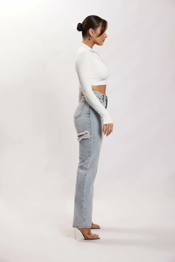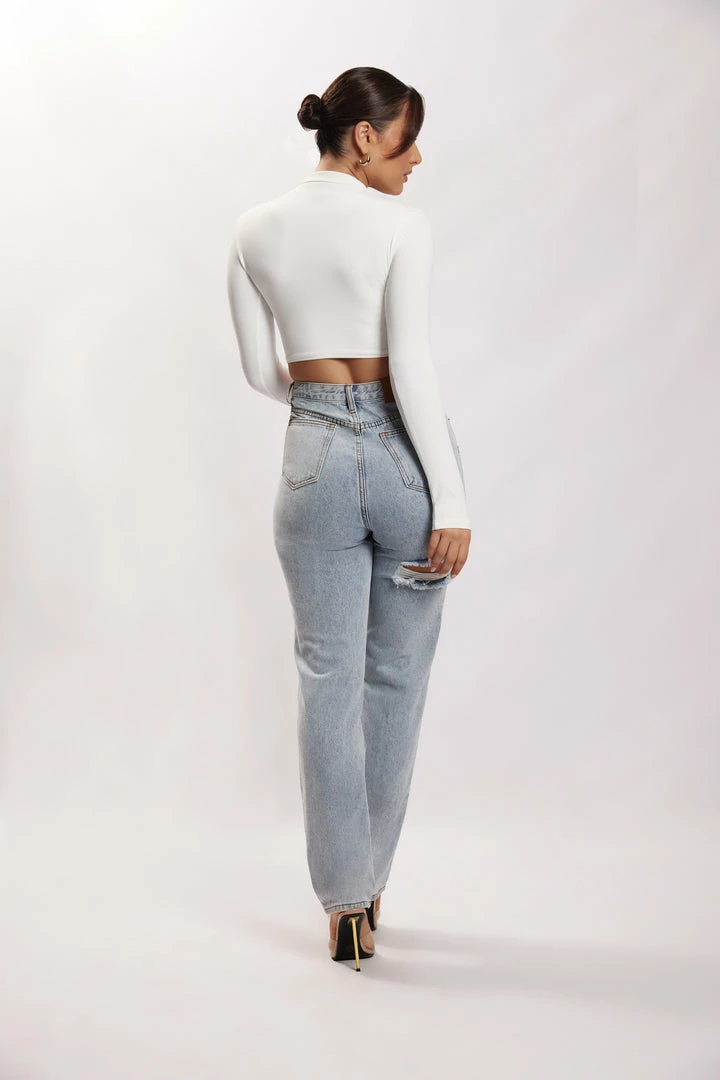 WXI Rebecca Zip Up Crop Long Sleeve Top – White