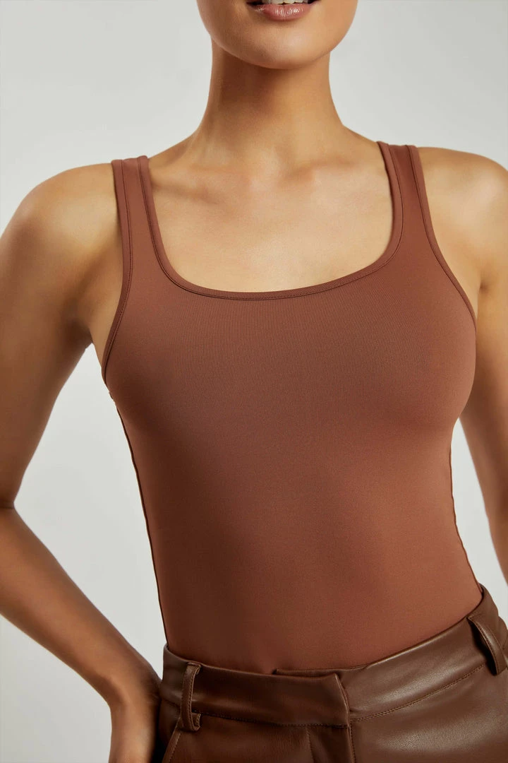 We created the ROSETTA Bodysuit because we wanted you to have the perfect foundation for your wardrobe in a luxurious, thick, non-see through ribbed fabric that lasts wash after wash.. We’ve crafted it in our CONTOUR Ribbed fabric that’s comfortable with a soft hand-touch, supportive with high stretch and retention quality and feels like pure luxury. It has a straight neckline with a subtle scoop that is flattering on any bust size and will make your collarbones pop and show off your shoulders and neck.