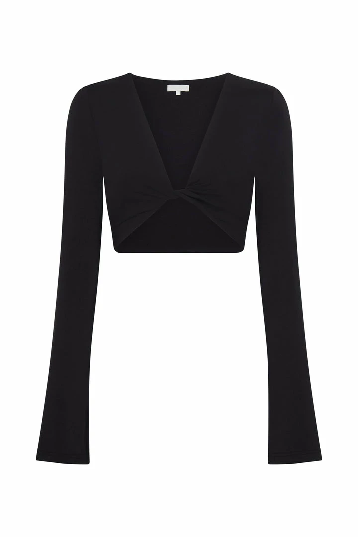 Welcome SAMANTHA to your social calendar. From statement day dressing to sundown cocktails, she is guaranteed to leave a memorable impression. Crafted from our custom COMFI Skin fabrication, Samantha features a plunge neckline with a centre front twist and bell sleeves with side splits for added drama. Complete the look with our Charley Midi Skirt for a look to remember.