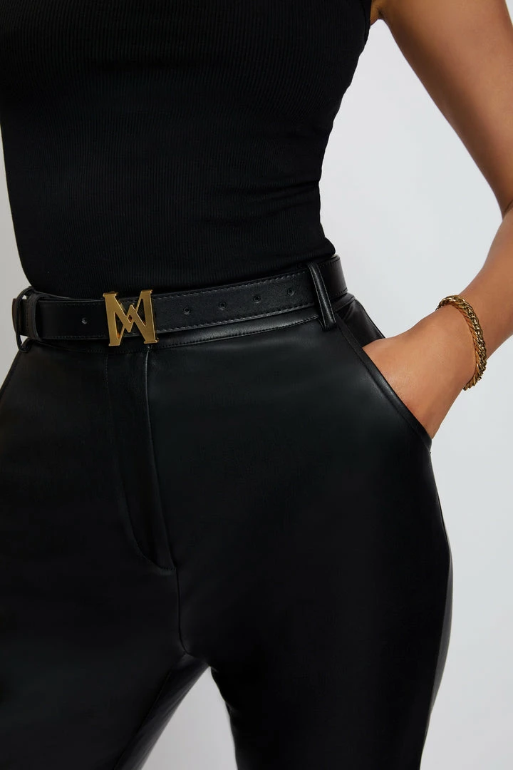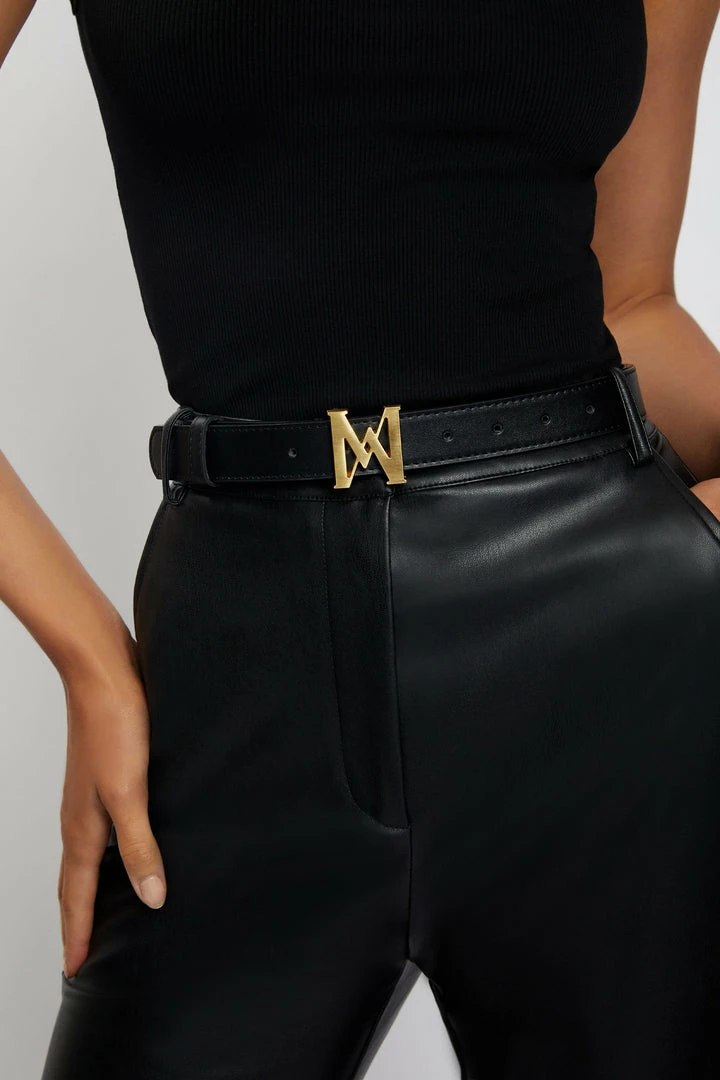 The MONA MESHKI Logo Vegan Leather Belt is a simple yet timeless wardrobe essential, made from a premium vegan leather. Synonymous with MESHKI’s eye for detail, Mona ensures year-round wearability with her signature logo hardware and a minimal aesthetic. Loop through your favourite denim or faux leather pants to elevate your look or style with an oversized blazer to flatter your waistline.