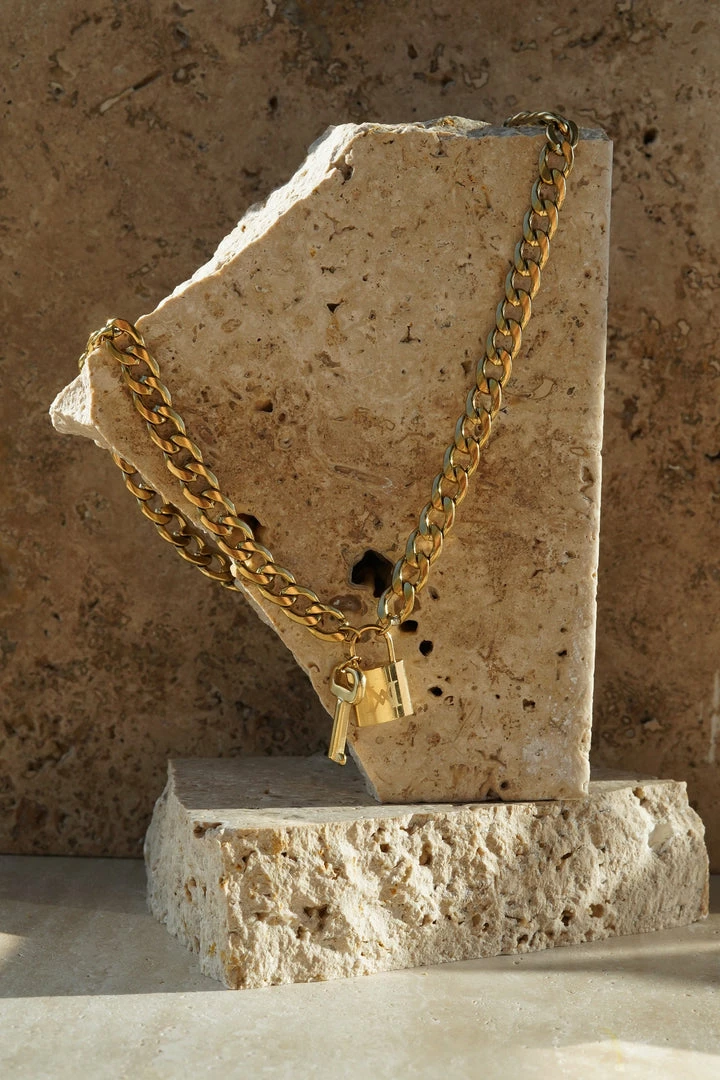 Understated yet captivating, the SHANESE Lock And Key Necklace is our new season adornment to covet. Shanese is suspended by a statement chain and features a padlock and key pendant with a custom MESHKI engravement. She makes a bold addition to any minimal look.